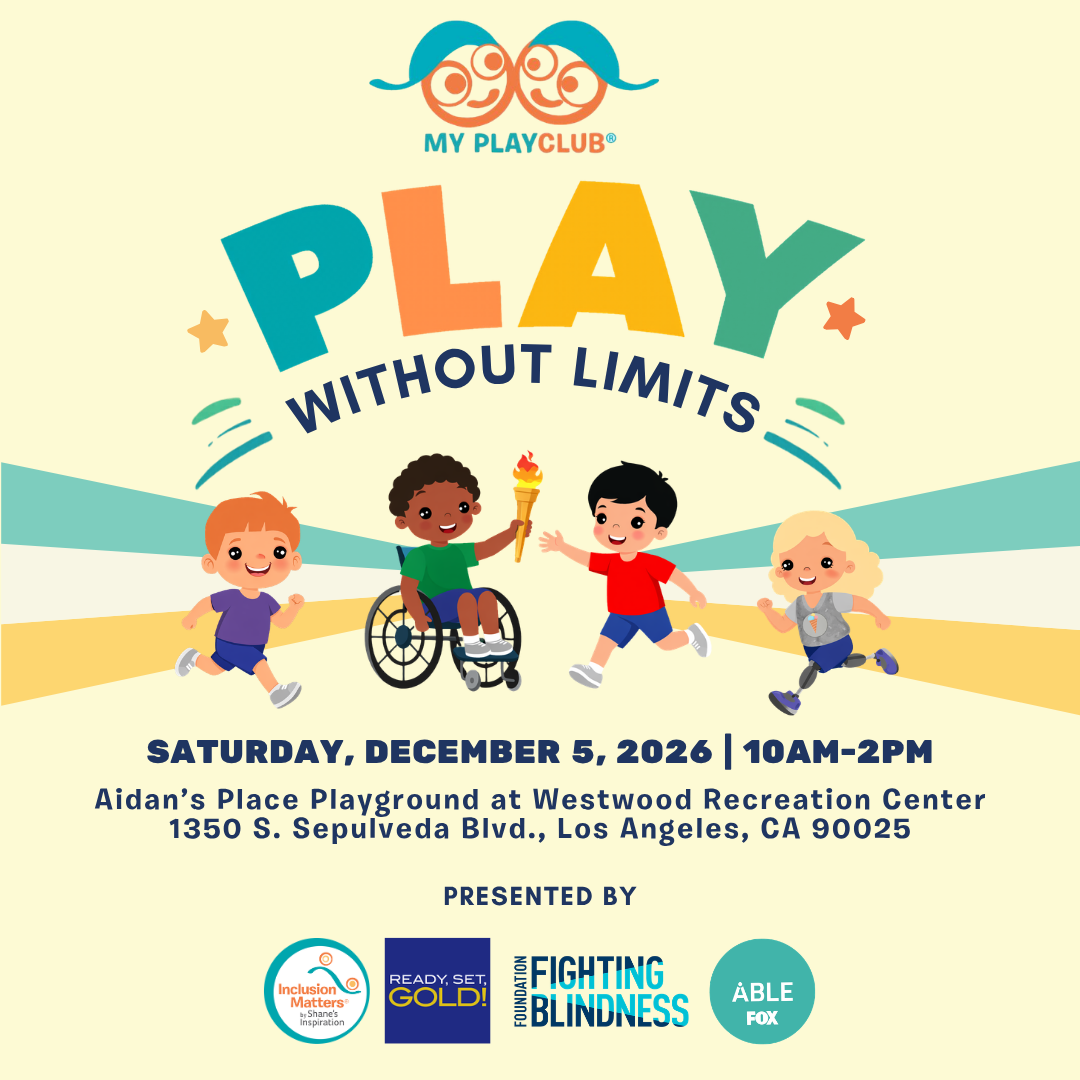 Wanna play together? My PlayClub is our FREE community outreach program that brings together kids of ALL abilities for a fun playdate at our inclusive playgrounds. We provide crafts, temp tattoos, stories, and snacks. Plus, we often have special guests and activities. My PlayClub meets every other month at a different playground in Los Angeles. We also have My PlayClub at other cities around the world. For more info, contact marci@inclusionmatters.org.